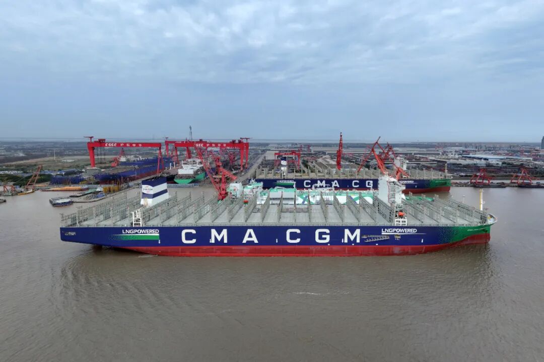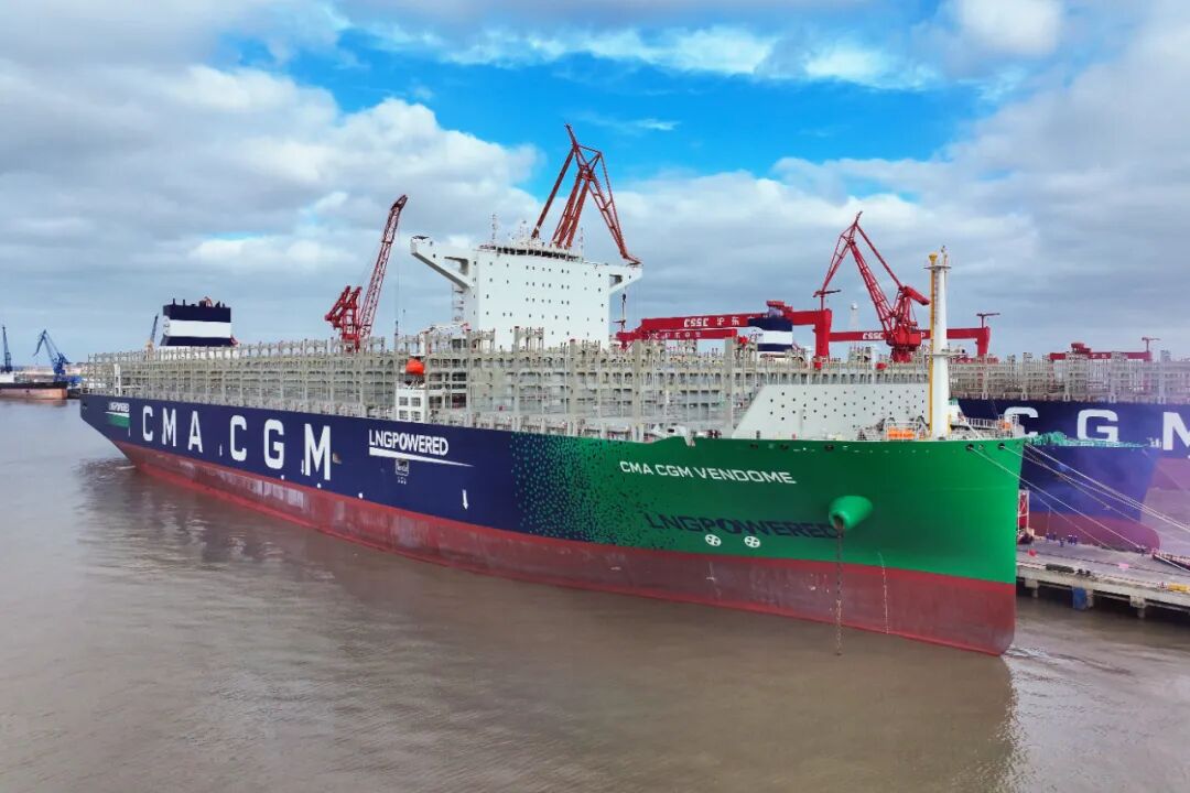 12月12日,中国船舶集团旗下沪东中华造船(集团)有限公司为法国达飞海运集团建造的全球最大24000TEU 级LNG双燃料集装箱船“达飞旺多姆”(CMA CGM VENDOME)号提前8个半月命名交付,标志沪东中华全面完成2025年生产经营任务。同时这是沪东中华建成交付的第100艘集装箱船,是中国船企荣光镌刻的新里程碑,彰显中国在全球造船领域的主导地位。