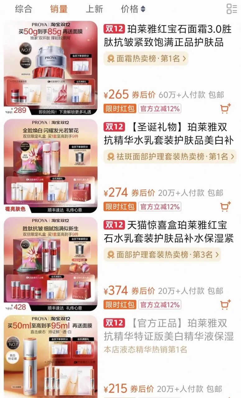 事实上,营销与渠道本就是珀莱雅崛起的核心抓手。创立初期,品牌深耕三四线城市日化专营店,以高性价比补水产品快速覆盖下沉市场;2012年后,珀莱雅又率先卡位电商赛道,搭建专业电商团队并深度绑定平台资源,随后更是借力抖音、小红书等社交媒体,通过 “内容种草+头部主播带货” 的组合拳实现爆发 。