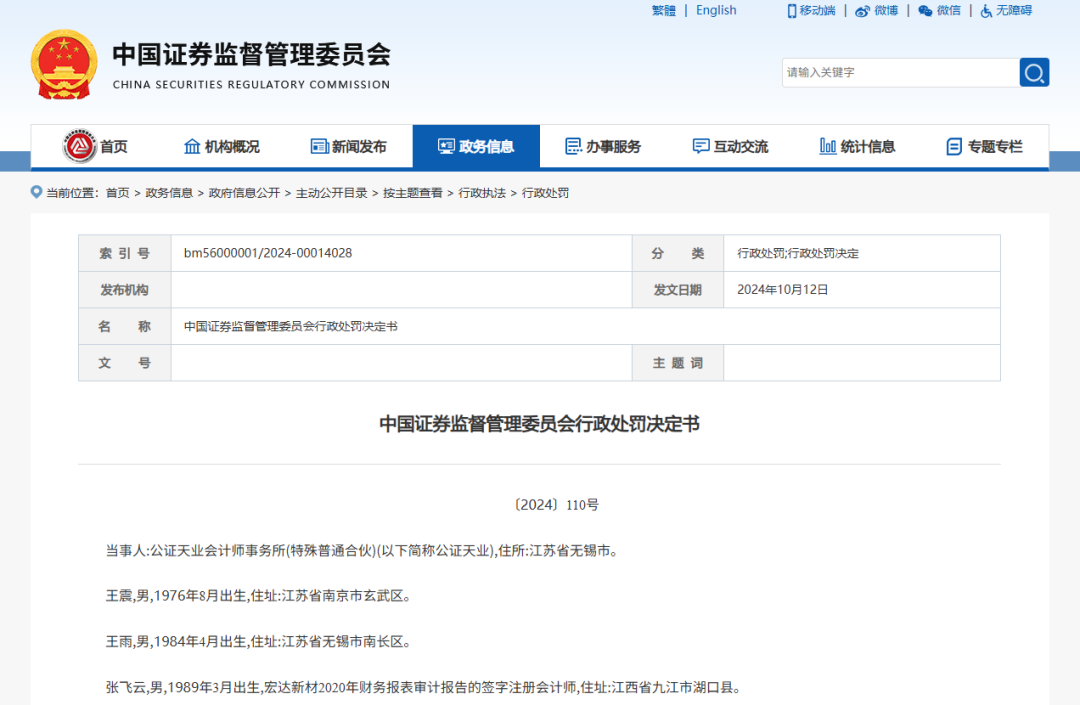 法院同样判它承担20%的连带赔偿。 证监会还单独对它开了巨额罚单:没收收入113万,罚款226万,签字会计师个人也被重罚(50万、30万不等)。