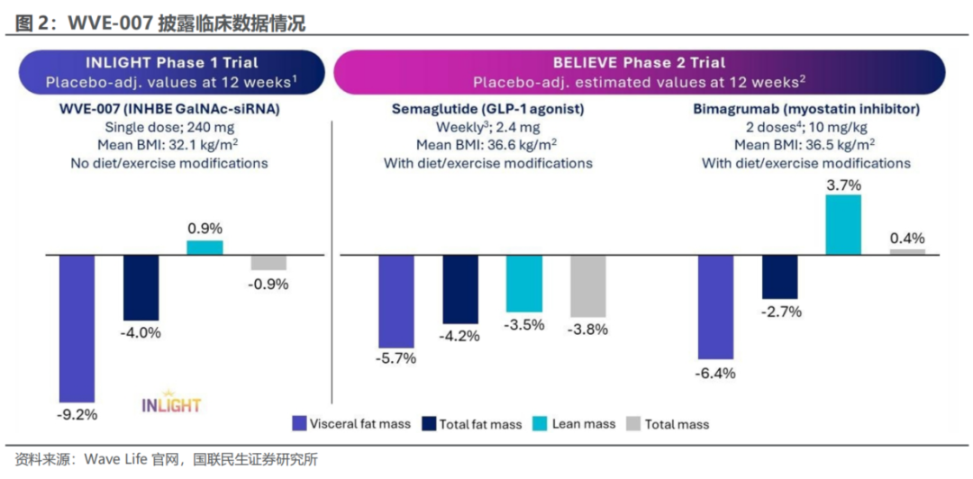 2025.12.8,Wave Life公布一期INLIGHT试验中关于肥胖的积极中期数据;单剂量治疗在三个月内无肌肉流失时,体成分改善,脂肪减少与GLP-1相似,安全性良好。