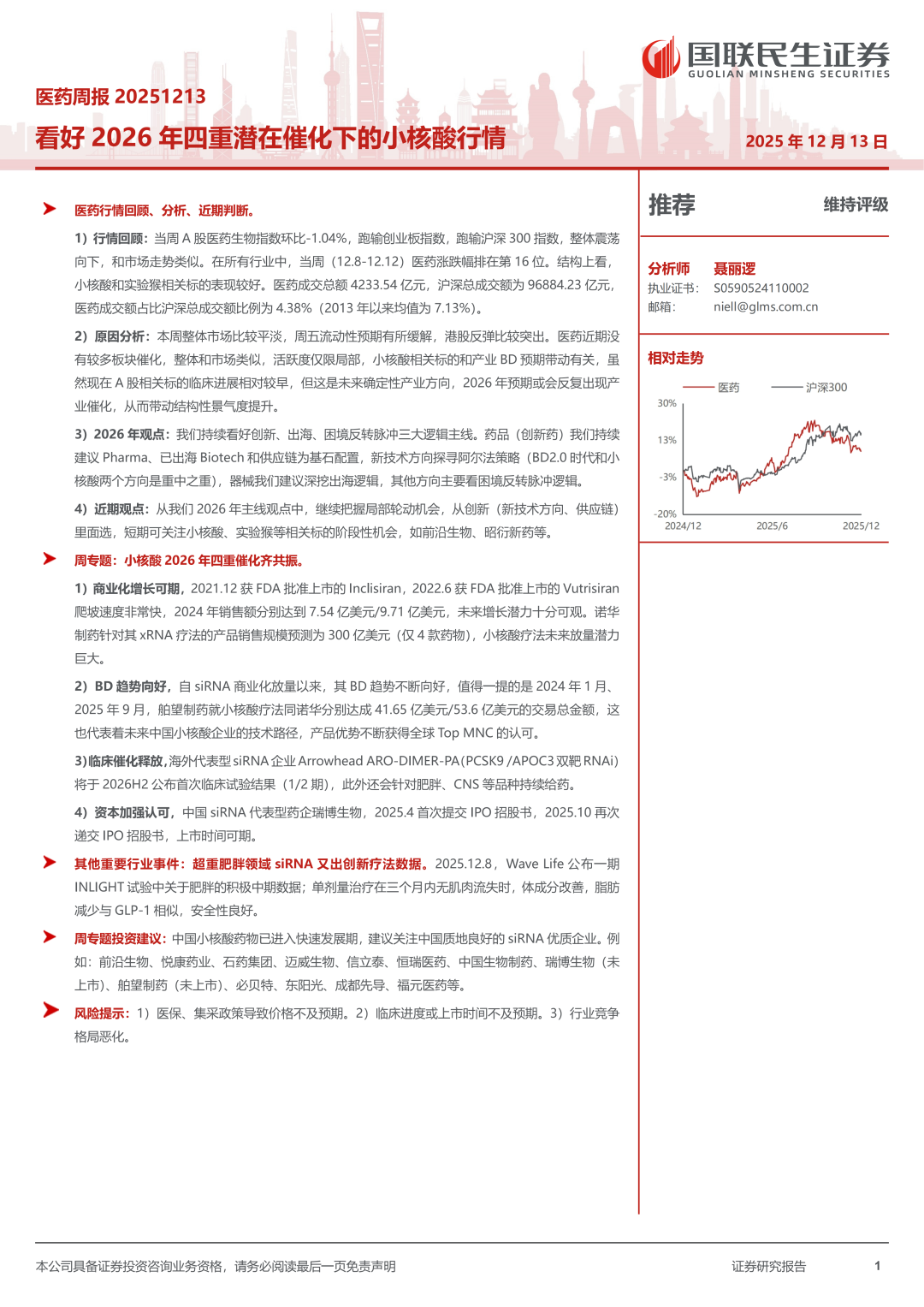 证券研究报告:《医药周报20251213:看好2026年四重潜在催化下的小核酸行情》