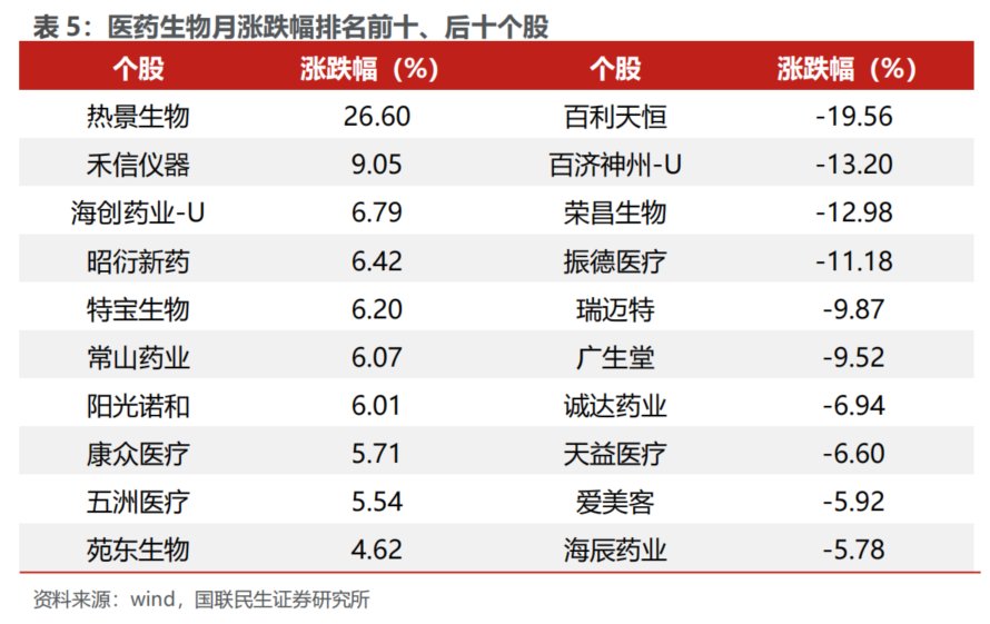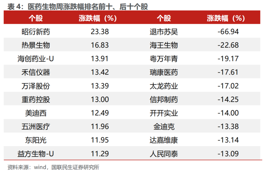 2.3 医药板块个股行情回顾
