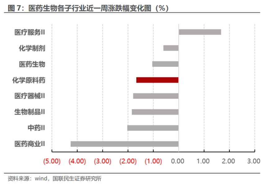 子行业方面,当周(12.8-12.12)表现最好的为医疗服务II,环比+1.67%;表现最差的为医药商业 II,环比 -4.26%。