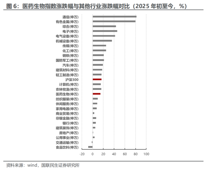 在所有行业中,当周(12.8-12.12)医药涨跌幅排在第16位。2025年初至今,医药涨跌幅排在第16位。