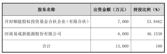 公告显示,为整合资源,优化股权结构,河南易成新能源股份有限公司(以下简称“公司”)将以1,000万元收购登封市嵩基(集团)有限公司(以下简称“登封嵩基”)持有的开封时代新能源科技有限公司(以下简称“开封时代”)7.6923%股权,本次收购完成后,公司将持有开封时代46.1538%股权。