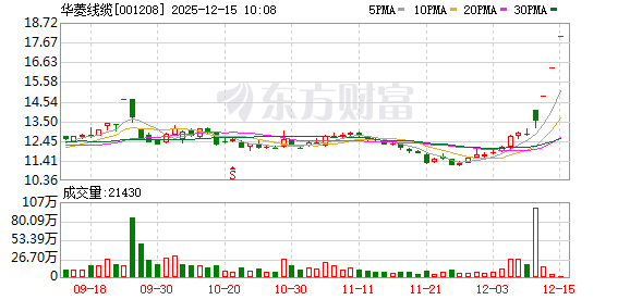 华菱线缆盘中涨停,已连收3个涨停板,截至9:25,该股报17.97元,换手率0.35%,成交量93.17万股,成交金额1674.26万元,涨停板封单金额为16.74亿元。连续涨停期间,该股累计上涨33.11%,累计换手率为8.44%。最新A股总市值达114.71亿元,A股流通市值47.33亿元。