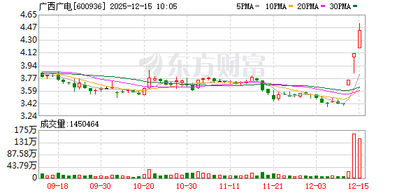 广西广电盘中涨停,已连收3个涨停板,截至9:32,该股报4.52元,换手率3.84%,成交量6419.16万股,成交金额2.79亿元,涨停板封单金额为220.80万元。连续涨停期间,该股累计上涨32.94%,累计换手率为15.10%。最新A股总市值达75.53亿元。