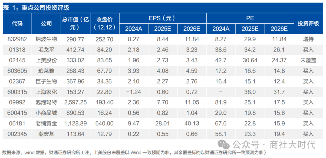 ❖黄金珠宝:从渠道到产品跃迁,关注出海布局。当前行业分化凸显,高附加值首饰具消费韧性。税率新规下重塑投资性与饰品性黄金产品的流转逻辑,利好具备产品力、品牌力、数字化运营能力的头部黄金珠宝品牌。展望明年,国内市场内卷加剧,出海成为突破增长瓶颈的第二增长曲线。建议优选兼具国内市场强品牌属性与积极海外开拓态势的黄金珠宝公司,推荐老铺黄金、潮宏基,关注周大福、周六福、六福集团、莱绅通灵、曼卡龙、菜百股份、萃华珠宝、周大生、老凤祥等。