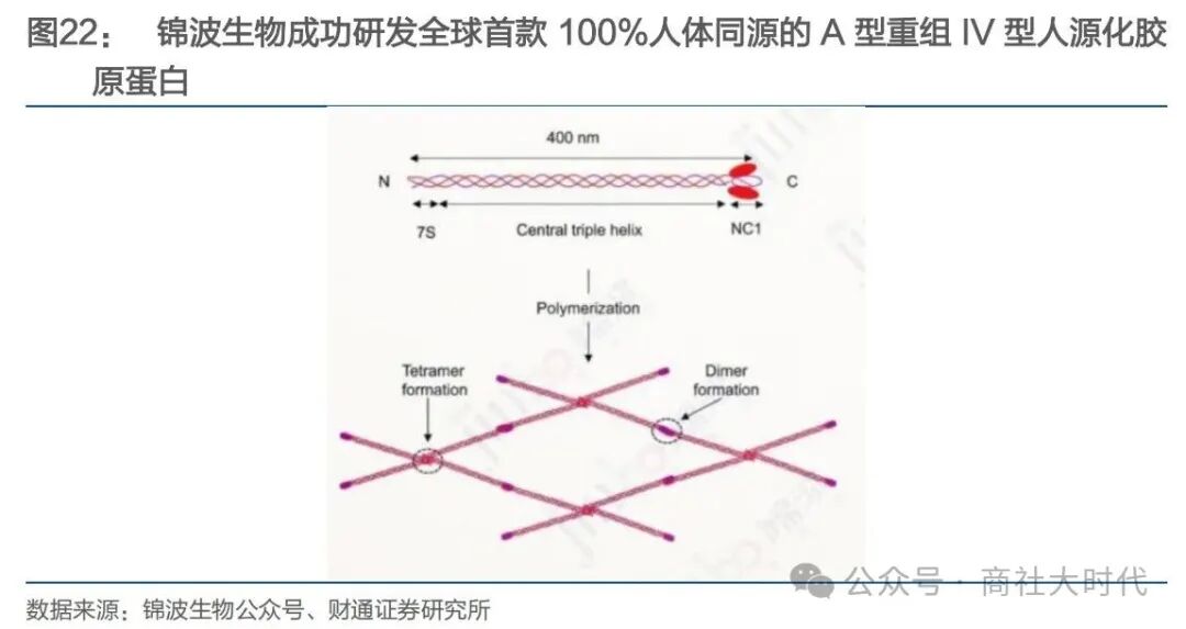 重组胶原蛋白:重组胶原蛋白凭借药物缓释、软组织填充、止血、创伤愈合及保湿修复等多元应用价值,不仅在皮肤疾病治疗和医美术后场景中实现精准修复,也在化妆品级应用展现高适配性、强安全性的差异化优势。弗若斯特沙利文数据显示,2025年胶原蛋白市场份额将成为护肤品第一大原料成分,基于重组胶原蛋白的功效性护肤品预计2027年市场规模将达到645亿元。龙头公司围绕多型别展开创新研究,锦波生物成功研发全球首款100%人体同源的A型重组IV型人源化胶原蛋白,2024年10月锦波添加A型重组IV型人源化胶原蛋白的Prot Youth胶原多肽精华液备案完成上市,且已经获得FDA备案;巨子生物相继拿下重组人IV型、XVII型胶原专利,已储备33种不同类型的重组胶原蛋白;丸美生物创新打造“I型+III型嵌合、Cpro扣环三螺旋结构、翻译暂停专利技术”三大优势,打造兼具I型与III型优势的重组双胶原2.0,技术获IFSCC创新大奖认证。