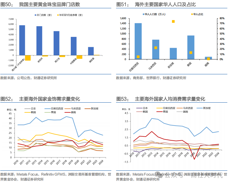 1)消费群体:作为与中国文化血脉相连的地区,东南亚凭借其庞大的华人社群(如 印尼超 1400 万、泰国超 930 万、马来西亚近 770 万华人),构成了黄金消费的 天然沃土。我们认为,优势体现在两方面:一方面,庞大的华人群体对黄金产品 有着天然的偏好,保障了了坚实的消费基础;另一方面,与中国相似的文化理念, 使得成熟的产品设计能够直接被复用,从而降低了市场教育成本,提升了切入效 率。