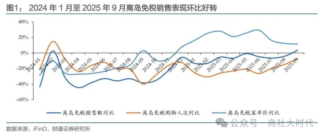 离岛免税:基本面筑底,政策放宽进一步带动改善。2025年10月15日,三部门公告扩大离岛免税商品范围以及扩大适用人群等政策,新政从2025年11月1日开始实施。从效果上来看,离岛免税新政实施首周(2025年11月1-7日),海口海关共监管海南省离岛免税购物金额5.06亿元,购物人数7.29万人次,同比分别增长34.86%、3.37%,其中购物人次转正。年初以来免税客单价保持增长带动离岛免税销售额同比转正,购物人次降幅持续收窄,而此次新政以后购物人次同比转正,是一个积极信号,我们认为离岛免税目前正在筑底,且四季度开始海南销售进入旺季,叠加去年低基数景气度有望同比明显改善。