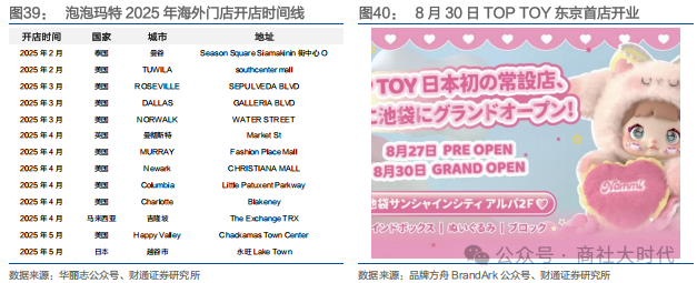 渠道端:潮玩出海火热,创新场景消费助力发展。潮玩品牌正以 IP创新的影响力 开辟出海新赛道,凭借多元渠道与本土化适配,突破文化壁垒。TOP TOY 东京首店首日销53万元,自有IP“Nommi 糯米儿”火爆。2025 年泡泡玛特作为首个中国潮玩品牌登陆卢浮宫参展,助力产品快速触达全球消费者;在曼谷 CentralPattaya 等地布局快闪店,结合万圣节、 国庆等节点推出“WHYSOSERIOUS”系列、“星星人美味时刻系列”盲盒,通过限时渠道制 造稀缺性,推动产品溢价。2025年7-8月52TOYS携NOOK、CiCiLu、变形机甲猛兽匣等 IP亮相日本Wonder Festival和美国圣迭戈动漫展;8月1日在曼谷开设泰国第七家线下门店,持续推进“海外百店计划”,成为出海新力量。