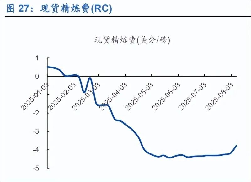 矿业供需平衡前移,铜精矿加工费持续走低。综合加工费是矿产商向冶炼厂支付的, 将铜精矿加工成精炼铜的费用。矿产商与下游冶炼厂协商 TC/RC 费用,以 LME 价 格为基准,扣除加工费后,作为矿石的售价。因此,当铜精矿供需出现变化时,会直 接影响到加工费价格。目前,铜矿石产能增速放缓,矿冶平衡点前移,矿产商议价能 力持续增强,导致铜精矿加工费不断走低。