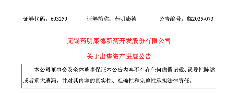药明康德加速剥离非核心资产。