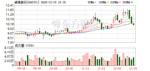 截至12月15日收盘,卓锦股份股价报10.07元/股,总市值为13.52亿元。今年以来,该股累计大涨超88%。