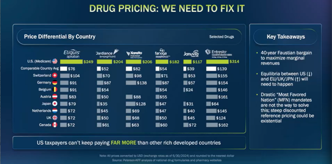 但有几个问题的确有其正当性。药品定价就是其中之一。我们必须改革全球药品定价体系。过去四十年,美国一直比其它富裕发达国家支付更高的药价,这种“美国高价、他国低价”的浮士德交易已不再被接受。我们需要再平衡,让美国药价下降,富裕发达国家药价上升。