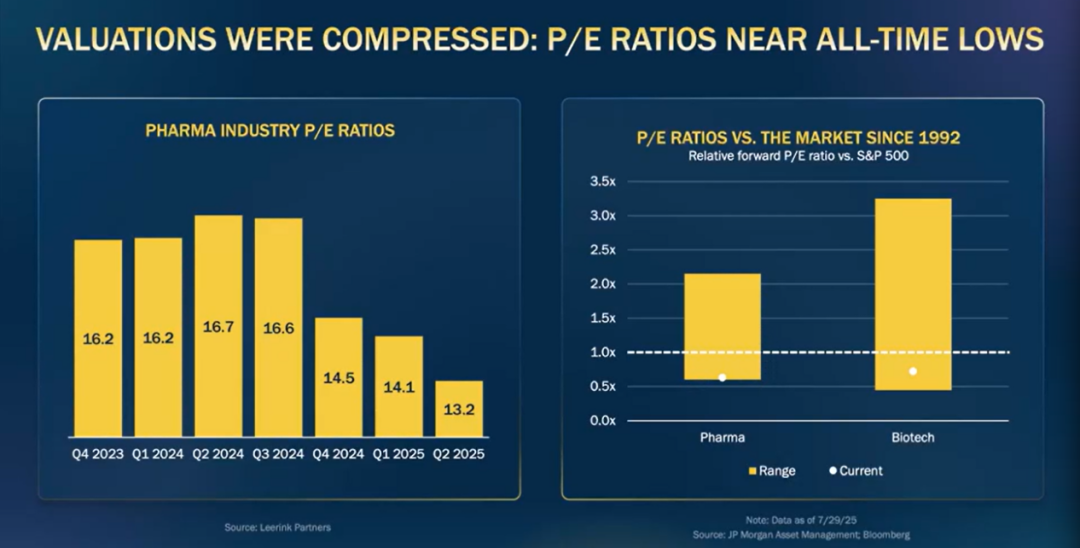 年中的挑战主要源于投资者对宏观问题的焦虑。受此影响,自选举以来的三个季度中,制药行业的市盈率下降了25%。制药和生物技术板块营收稳健、全球盈利能力强劲,市盈率倍数有望扩张,而相较于市场其他板块,当前正处于30年估值区间的最低位。