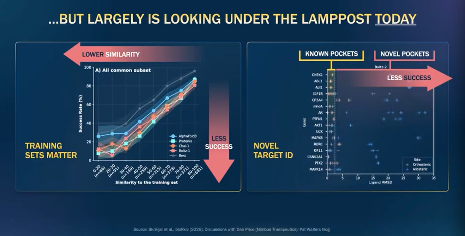 可以说,将AI机器学习应用于蛋白质-配体共折叠,其实还停留在 “灯下找物” 的阶段。这项技术有助于已知靶点和已知化学机制的研究,但在原始创新上依旧面临重重挑战。