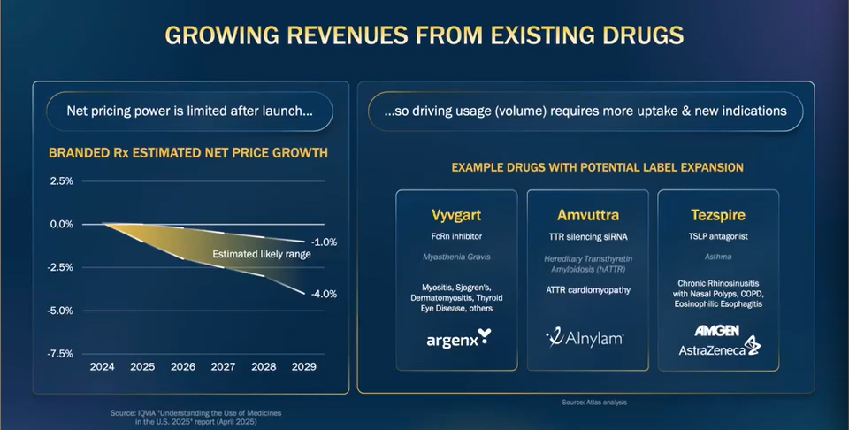 十年前,提价曾是药品业绩增长的核心驱动力——标价以两位数增长,净价也同步上涨——那个时代一去不复返了。受市场竞争与药房福利管理机构的处方集(formulary)准入限制,未来数年药品净价预计将为负增长。