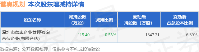 证券之星消息,12月29日蕾奥规划发布公告《蕾奥规划:简式权益变动报告书(更新稿)(陈宏军)》,其股东深圳市蕾奥企业管理咨询合伙企业(有限合伙)于2025年12月13日至2025年12月26日间合计减持115.4万股,占公司目前总股本的0.547%,变动期间该股股价下跌0.78%,截止12月26日收盘报17.8元。
