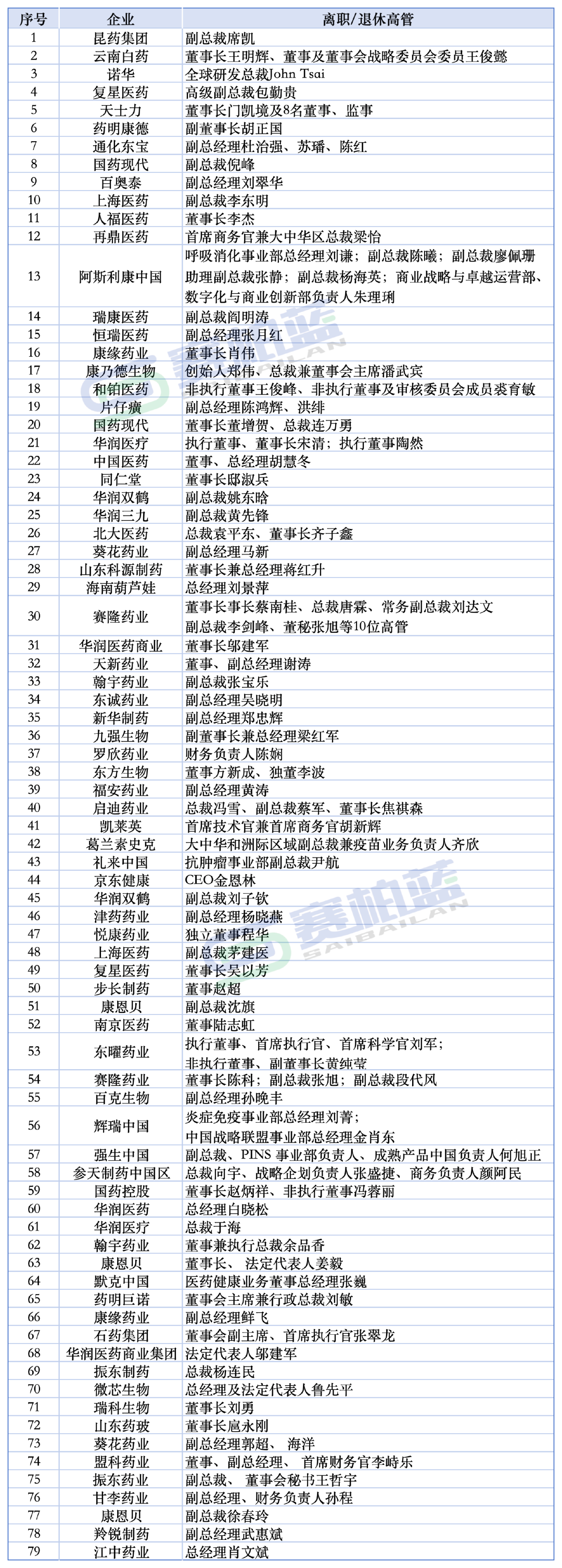 多家药企管理层大换血