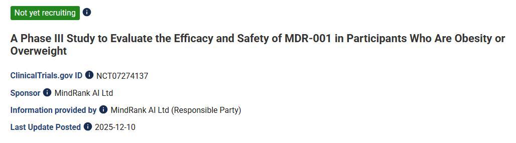 近日,杭州德睿智药科技有限公司(MindRank)正式宣布,其自主研发的人工智能辅助设计(AIDD)口服小分子GLP-1受体激动剂MDR-001 启动中国III期确证性临床试验(MOBILE)。
