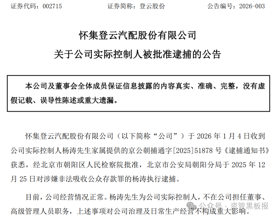 2026年1月5日事件迎来新进展:上市公司公告证实了实控人被逮捕