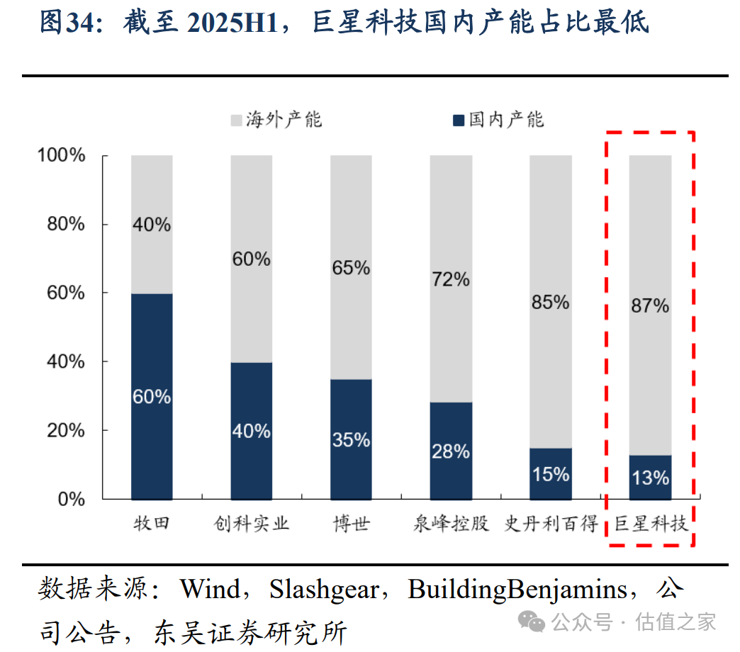 图片说明:巨星科技及主要竞争对手的产能布局,数据来源于东吴证券
