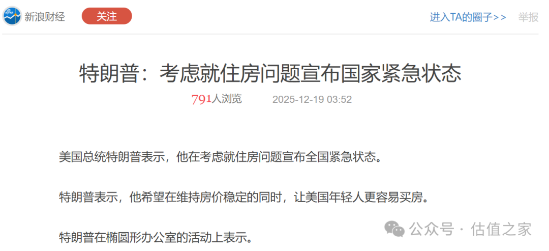 从需求端来看。特别值得注意的是,美国总统特朗普曾于2025年12月19日表示,正在考虑就住房问题宣布全国紧急状态,并表示希望在维持房价稳定的同时,让美国年轻人更容易买房。