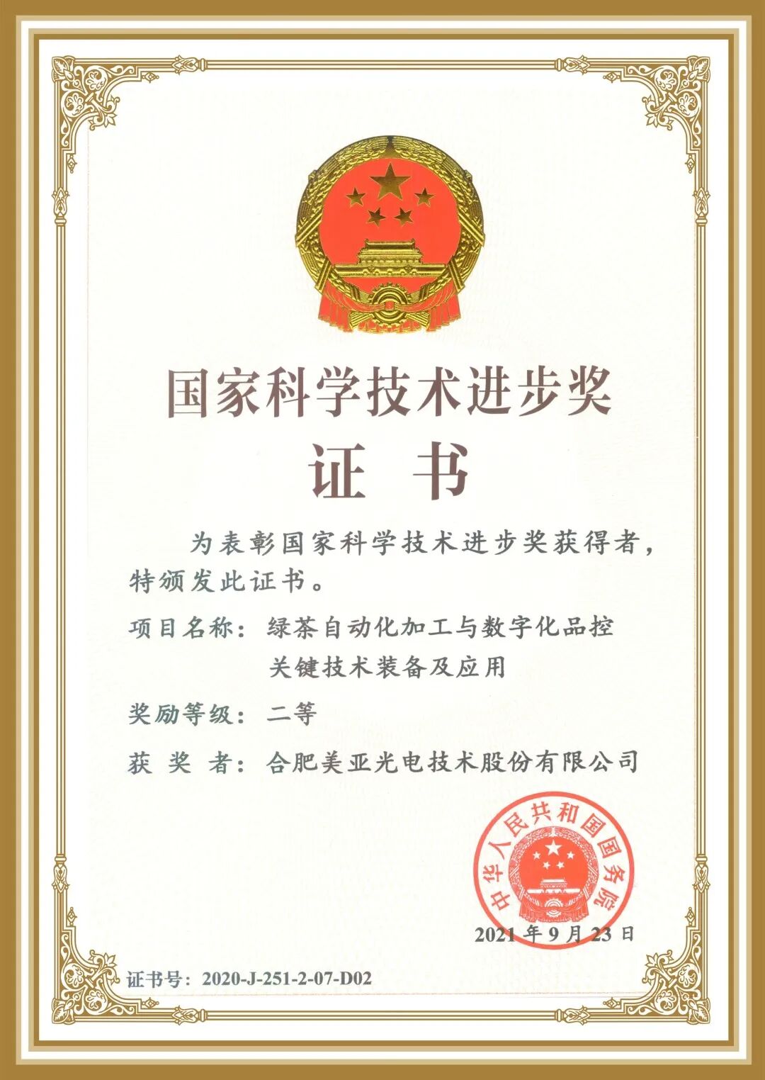 美亚光电两次荣获国家科技进步奖