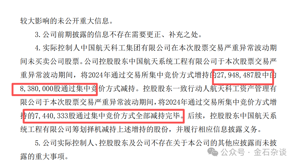 此外,商业航天最大牛股航天发展,将在本次严重异常波动期间进行减持,控股股东涉及838万股,一致行动人涉及744万股,按今日收盘价计算,涉资6.3亿。