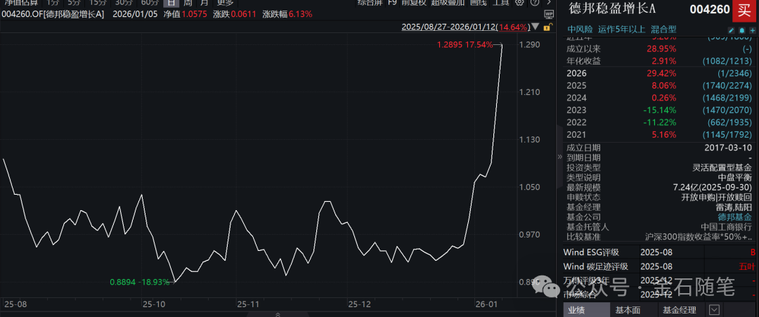 金石杂谈查询发现,目前能轻松找到的一只是德邦的基金,一只是长盛的基金。大家看,德邦稳盈近一周涨22%,今日暴涨14.64%。25年Q3规模只有7亿多,如今如果涌入120亿,加上上周五的规模,可能快200亿了。