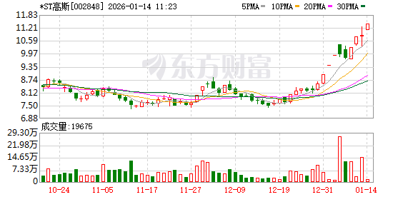 *ST高斯再度涨停,9个交易日内录得6个涨停,累计涨幅为33.22%,累计换手率为48.75%。截至9:31,该股今日成交量132.16万股,成交金额1497.13万元,换手率0.80%。最新A股总市值达19.04亿元,A股流通市值18.79亿元。