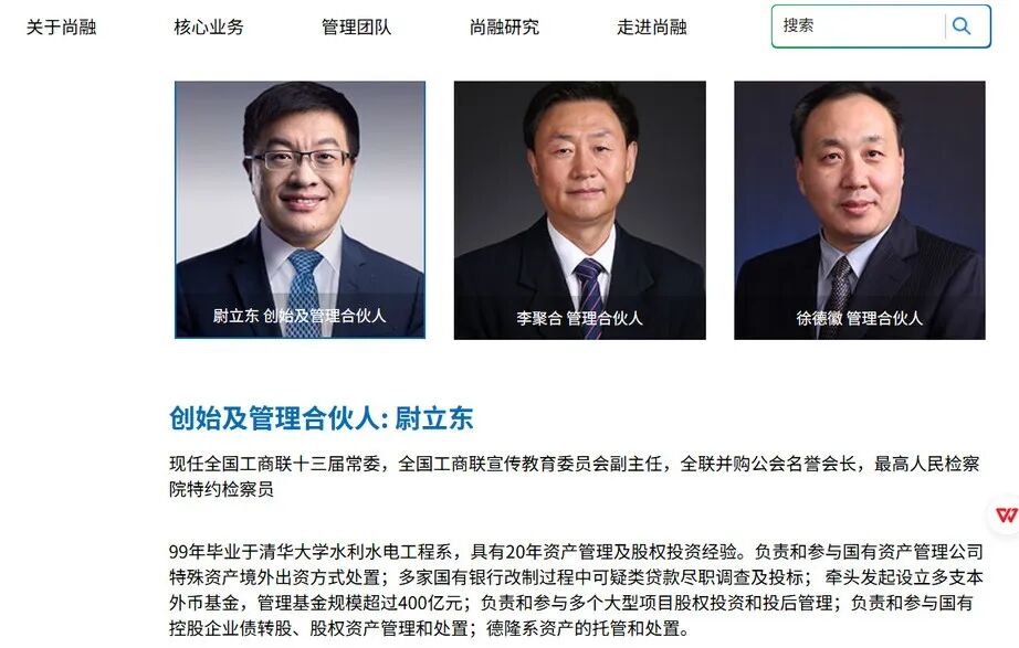 另据北京尚融资本管理有限公司官网,尉立东1999年毕业于清华大学水利水电工程系,具有20年资产管理及股权投资经验。
