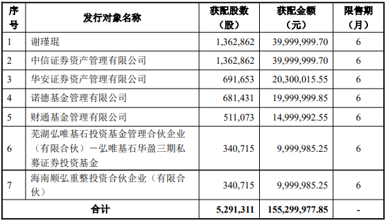 据公开资料显示,长华化学本次发行对象最终确定为7名。本次向特定对象发行的股票,自上市之日起六个月内不得转让,自2026年1月22日(上市首日)起开始计算。公司本次发行募集资金总额155,299,977.85元,募集资金净额为152,857,279.65元。