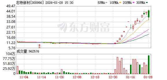 志特新材今日下跌12.99%,全天换手率23.38%,成交额37.40亿元,振幅31.57%。龙虎榜数据显示,机构净卖出6306.60万元,深股通净卖出7595.51万元,营业部席位合计净卖出2.68亿元。