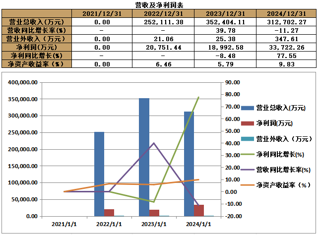 业绩情况:2022-2024年底,公司的营业收入分别为252111.38万元、352404.11万元,312702.27万元,年均复合增长率达到 11.37%; 归母净利润分别为20751.44万元、18992.58万元、33722.26万元,年均复合增长率达到 27.48%。
