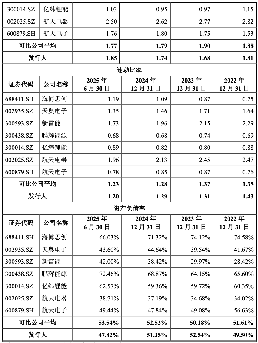 报告期内,公司与同行业上市公司偿债能力指标比较如下: