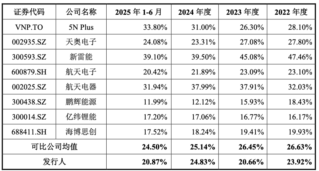 报告期内,发行人与同行业可比上市公司主营业务毛利率的对比情况如下: