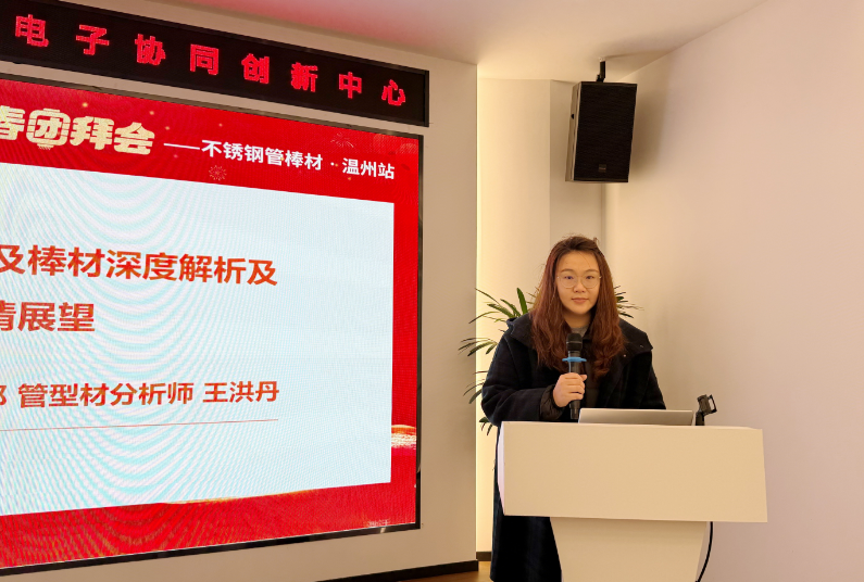 下面,由上海钢联不锈钢事业部管型材分析师王洪丹女士做题为《2025年不锈钢管材及棒材深度解析及2026年行情展望》演讲报告。本次报告梳理了2025年不锈钢管棒材价格宽幅震荡、产能增长、供需错配等行情,涵盖进出口、成本、下游应用等,提及行业技术创新与投资动向,展望 2026 年呈震荡复苏态势,并解读了相关价格体系。