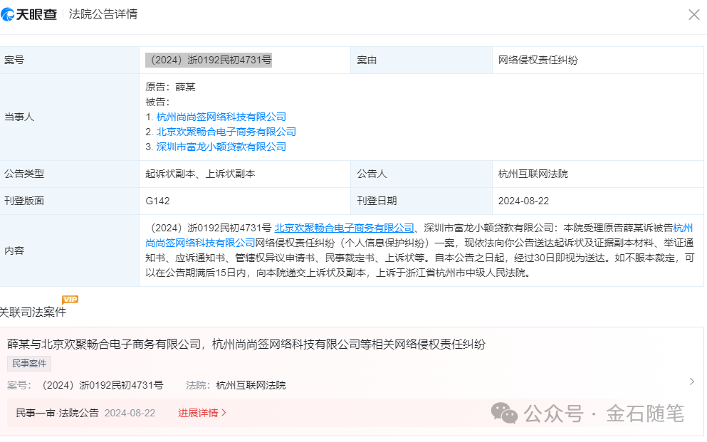也有自然人状告富龙小贷,原因是违规收集用户个人信息,涉及个人信息保护。