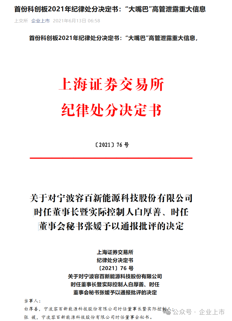 首份科创板2021年纪律处分决定书:“大嘴巴”高管泄露重大信息,