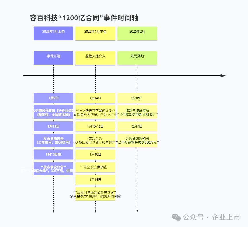 从1月13日发布那份引发市场轰动的“1200亿大单”公告,到1月18日被证监会立案调查,再到2月6日收到处罚告知,整个监管流程仅用了19个工作日。