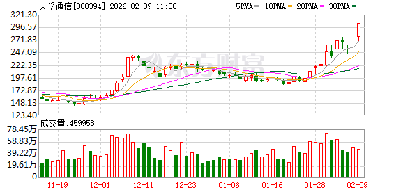 数据宝统计,截至11:11,天孚通信成交额125.52亿元,超上一日全天。最新股价上涨19.78%,换手率5.66%。上一交易日该股全天成交额为125.20亿元。