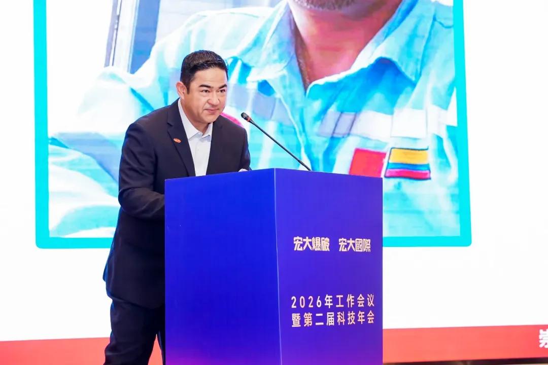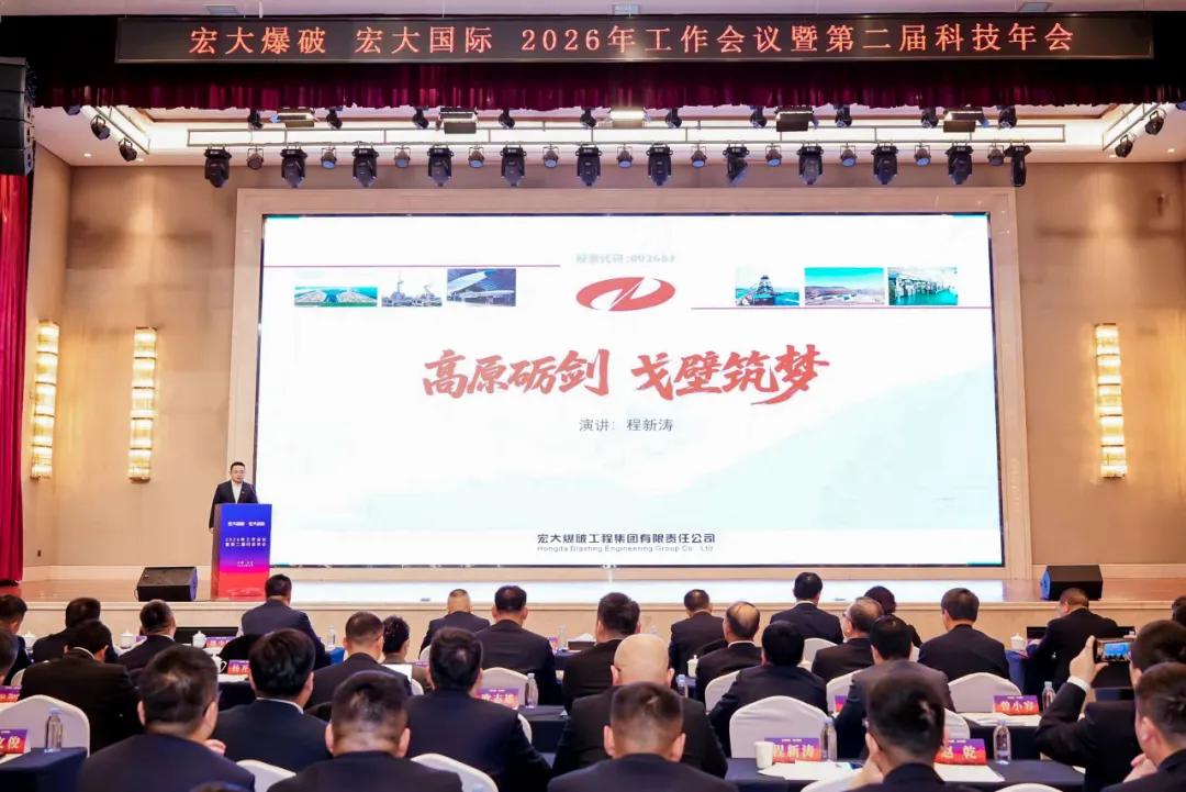 2月2日—4日,宏大爆破、宏大国际2026年工作会议在长沙召开。宏大爆破董事长郑明钗、广东宏大总经理张耿城,广东环保、广东宏大、宏大民爆、宏大防务相关领导,宏大爆破、宏大国际领导班子全员出席会议;该公司各部门、代表处、子公司、项目部、地面站及工厂全体负责人,本部全体员工,海外项目外籍员工代表、受表彰优秀代表、飞鹰学员共计400余人参会。会议由宏大爆破副总经理曾庆福主持。
