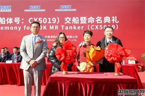 2月9日,中国船舶集团旗下中船澄西船舶修造有限公司为中船租赁、洲际船务集团建造的17号50000吨MR型油化船(CX5019)命名交付,这是公司今年交付的第6艘新造船。