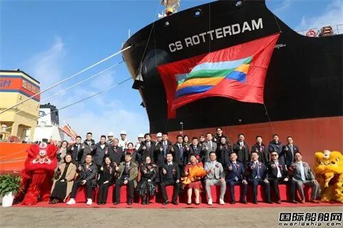 仪式上,命名人杲先霞女士为新船命名剪彩,祝愿“CS ROTTERDAM”轮乘风破浪、扬帆远航。