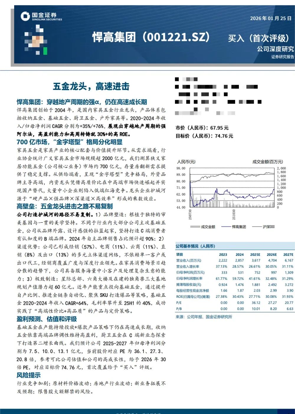 公司核心产品涵盖基础五金、收纳五金、厨卫五金及户外家具。其中,基础五金为核心增长引擎,以高性价比和稳定品质提升市场份额;收纳五金保持行业领先;厨卫五金凭借设计、品质与体验提升市场认可度;户外家具主攻海外高端市场,与国内业务互补。
