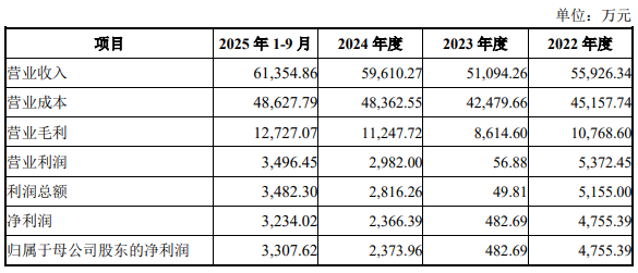 报告期内,公司实现营业收入分别为5.59亿元、5.11亿元、5.96亿元、6.14亿元;同期归母净利润分别为4755.39万元、482.69万元、2373.96万元、3307.62万元。