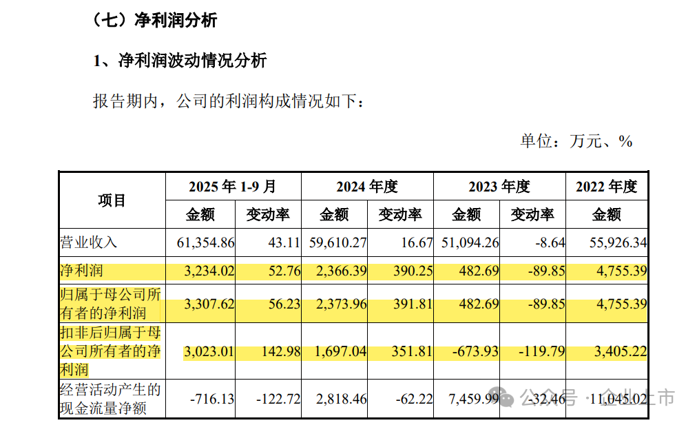 业绩趋势比单一年份重要:公司2023年确实很差(扣非还亏了),但2024年强势反弹(扣非赚了1700万),2025年前三季度继续增长(扣非已达3023万)。这说明公司走出了低谷,进入了上升通道。审核看的是趋势和持续性,而不是死抠某一个年份的数字。